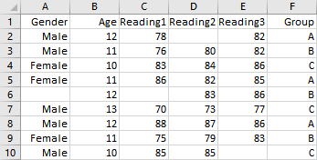 Make sure your dataset is organized into columns with the variable names at the top. In an Excel or CSV file, your variable names will appear on row 1. If you are entering data manually, the variable names are entered above row 1.