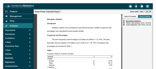 Intellectus Statistics provides a comprehensive, user-friendly platform for conducting statistical analyses and interpreting results. We empower users of all experience levels to complete research more effectively and efficiently, driving value for their institutions and communities.